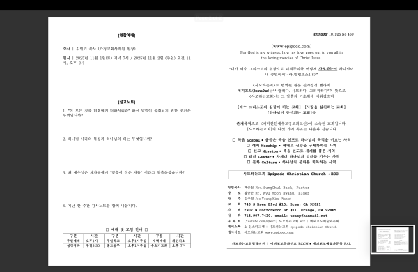10월 3주(19일) 주일예배 주보 페이지 정보 작성자 사모하는교회 댓글 0건 조회 35회 작성일 25-10-17 21:45 목록 본문 2025년 10월 19일 주일예배 주보 다음글10월 2주(12일) 주일예배 주보 25.10.11 댓글 0 댓글목록 등록된 댓글이 없습니다. 목록